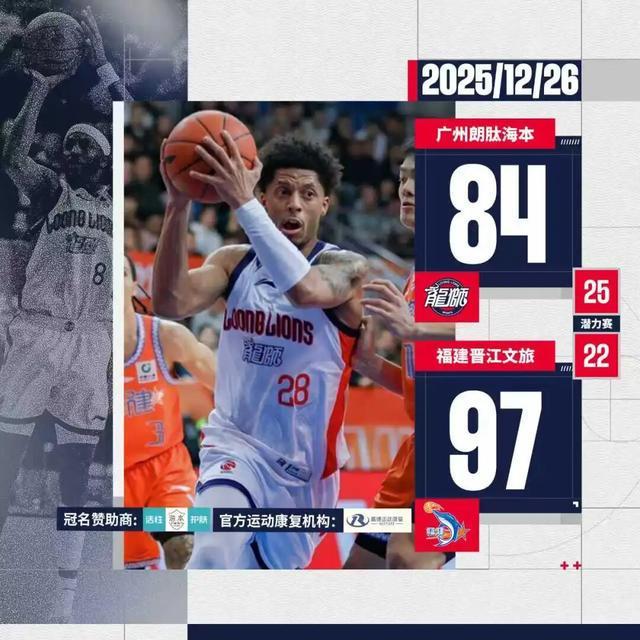 - 龙狮篮球俱乐部2025-12-26 22:17:122025-26赛季CBA常规赛第六轮客场负于福建广州朗肽海本84:97福建晋江文旅...发表于: 12-26 23:33