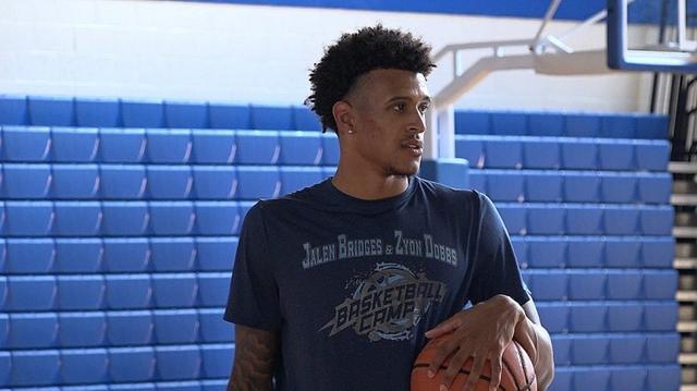 布里奇斯上赛季曾和太阳签下双向合同球员,他出战过8场NBA比赛,场均出场3.8分钟,有1.1分0.5篮板的数据