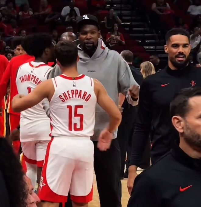 火箭今夏交易来的凯文-杜兰特缺席了季前赛第一场。