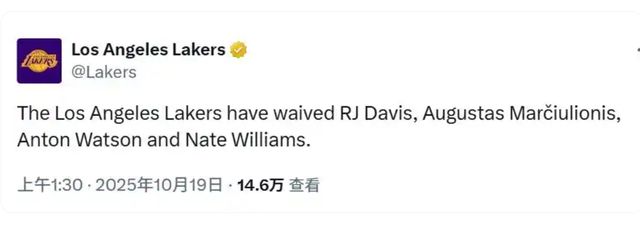 常规赛倒计时最后一天,湖人再度官宣消息:先后裁掉奥古斯塔斯·马尔丘利奥尼斯、RJ·戴维斯、内特·威廉姆斯、安东·沃森四人。对于这几人的离队,背后还是值得讨论一番的,其中有