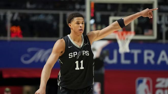 可在今年的新秀中,更多的则是和杨瀚森一样,在赛场上显得非常挣扎,完全找不到节奏的愣头青,就比如马刺队的卡特-布莱恩特。