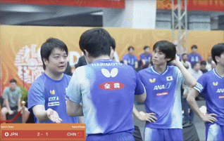 半决赛,在日韩对决后,日本队晋级。本次主队日本,排布如下一号:张本智和--A二号:松岛辉空--B三号:筱塚大登--C客队中国队,排布如下一号:梁靖崑--X二号:王楚钦--Y三号:林诗栋--Z本轮比赛