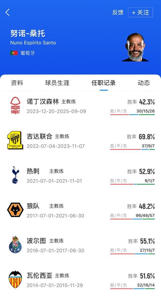 现年51岁的努诺无论是作为球员效力波尔图足球俱乐部时期,还是作为教练执教狼队和沙特职业联赛俱乐部吉达联合期间,都曾多次赢得联赛冠军和杯赛荣誉,是现代足球界最受尊敬的教练之一。