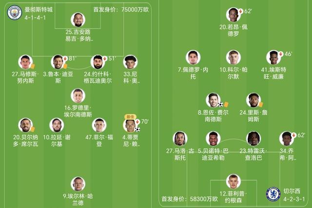 下半场再战,瓜迪奥拉的调整较为保守,球队进攻节奏似乎有所放缓,给了切尔西喘息之机。第51分钟,格瓦迪奥尔受伤被胡桑诺夫换下。