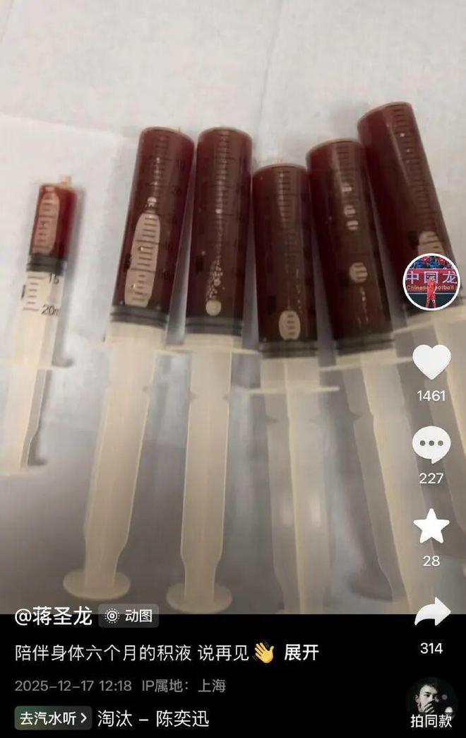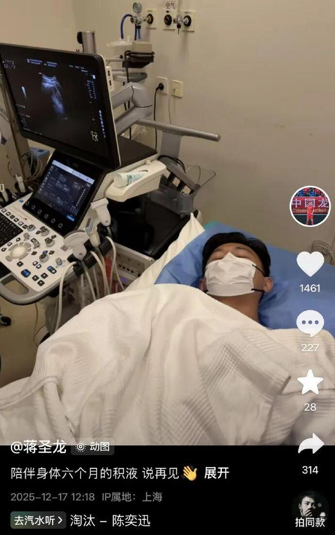 12月17日,上海申花队员蒋圣龙在自己的社交平台发布消息“陪伴身体6个月的积液 说再见”。这也说明了,在队内肩负重担的他最近半年都是带伤出战。