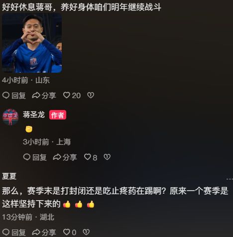 评论区的祝福是对蒋圣龙的最大肯定